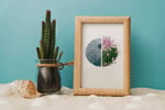 Dual nature. Sea urchins skeleton & Cactus. Illustration made digitally. Printed on 200gr. matte paper. Din-A5 (148 x 210 mm)No frame included